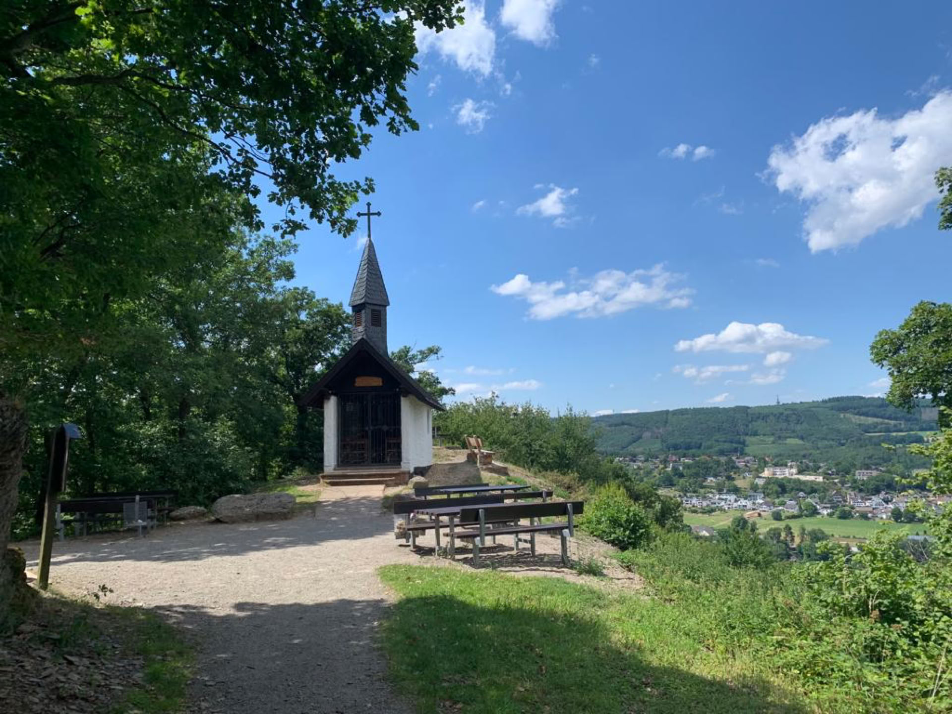 Begibt man sich auf den Weg zur kleinen Waldkapelle, entschädigt am Ziel ein herrlicher Blick auf Obermaubach für die Anstrengungen des Fußmarsches. Vielleicht beobachtet man dabei sogar die Flugkünste der Paraglider, die sich bei guten Witterungsbedingungen von diesem Berg ebenfalls in die Lüfte erheben.